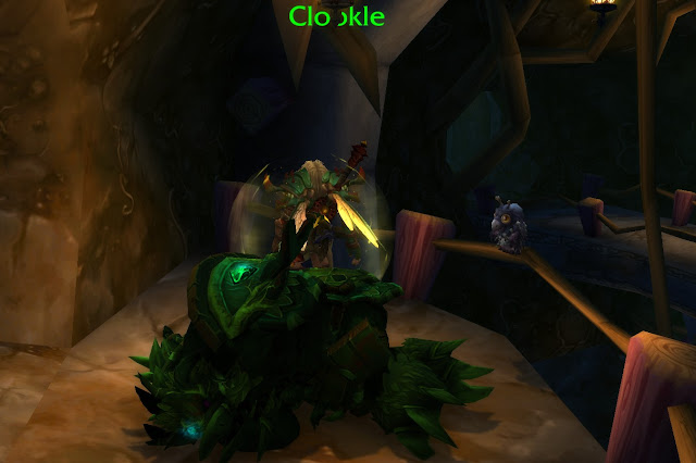 There were 3 things to collect from the satyrs which combined together to form an antidote. They moonkin hatchlings told me to to go to the Barrow Dens to go find Clookle. Well. This took me ages. I didn't realise there were TWO doorways and one goes to a short den and the other goes to where Clookle was. Guess who spent ages wandering around a dead end trying to find where to go...