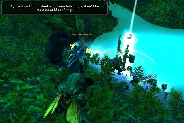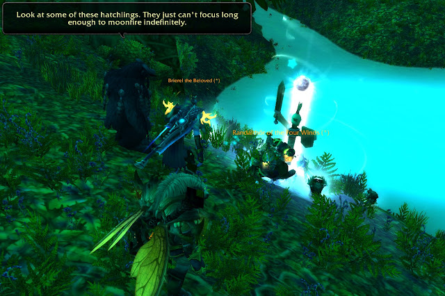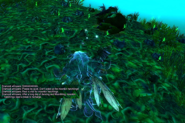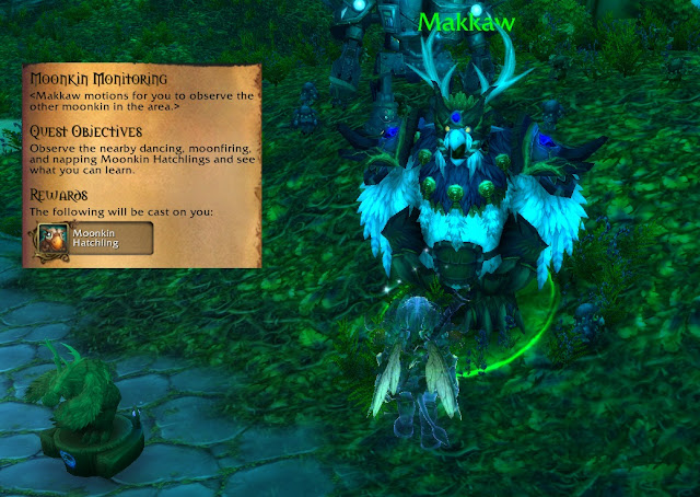 I got one moonkin hatchling following me after that. I didn't realise but I had to feed it these berries. Five in fact! They told me to kill Jadefire satyrs. Another moonkin popped up to join the first one.