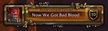 The next one we did was Vectis's achievement, Now We Got Bad Blood. A mob on the outside (Warmother Rakkali) had to be kited into the room and NOT killed until it had stood in one of the circles during the liquify stage. The hard part was making sure it wasn't accidentally cleaved down! It got the debuff and then we killed it. Yay!