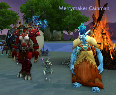 And Cain wanted to surprise me with a pet but the tournament had stuffed up my pets and achievements so he didn't know what pets I had! He gave me the last one I needed for the achievement - a Coilfang stalker! Thank you so much Cain!!! I was so happy, I was squealing and fidgeting on my seat. I actually looked at the pet in my bag for a while, grinning to myself, and Cain asked me if I was going to learn it! LOL silly daydreaming me! Of course, for getting the achievement I also got Tito, Dorotha's pet. So here I am with my new pets, Cain and my new achievement.