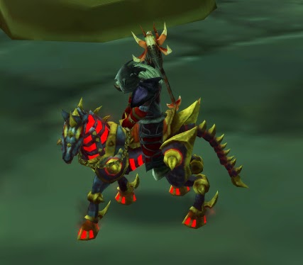I logged into Battle net and saw this Warforged Nightmare - I think it looks really cool! And you can get a hitching post with it as well so everyone can ride one. That would be cool for raid!